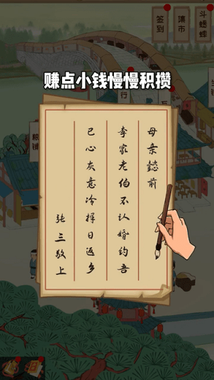 回到宋朝买条街将古风经营,创业,穿越等多种元素结合在一起给玩家们制造了一个非凡的模拟体验,你在机缘巧合的情况下穿越到烟雨蒙蒙的宋朝,在这里开启了自己经商的第二人生,买下这条商业街,将它成功打造成天下第一街。