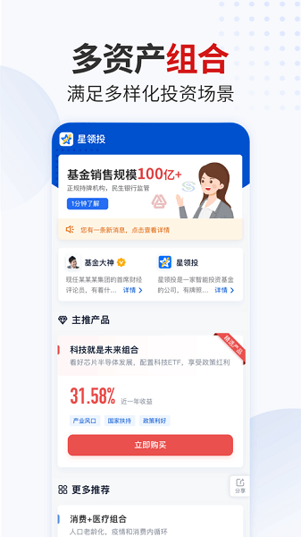 星领投是通过人工智能构建的个性化投资管理平台,充分发挥金融投资大咖的投资理念,满足用户多样的投资需求和场景,系统24小时监控全球金融市场的各类资产,动态调仓紧跟大咖的投资理念,帮助中产省时省心的实现资产的保值、增值,让专业的人帮您管理财富,您只需要享受美好的生活。