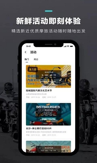 为用户提供精选优质摩旅活动,随时随地即可出发;