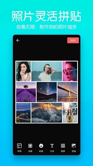 3、智能p图工具,超多个性贴纸都可以免费使用,发挥自己的创意。