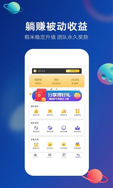 稻米星球,近10亿网民都能用的区块链社交电商,提供多个网购平台的大额隐藏优惠券,分享赚钱,自购省钱。零门槛、零投资、零囤货、零发货、零风险,超高购物返佣冠绝全网。稻米星球,收获你的生活。