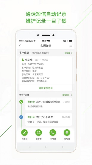 【消息功能】通过短信为你发送消息,提醒你更好的维护自己的客户,解决客户的问题。