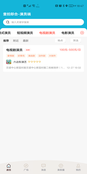3、会有新的剧组来这里发布要招聘的群演的,可以来这里试试看。