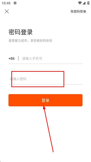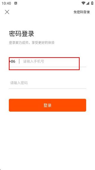 3、点击输入框,在输入框内输入需要登录的手机号。