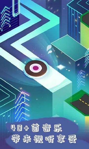 选择你喜欢的音乐,轻敲屏幕在曲折的道路上转弯。根据不同类型音乐的节拍,不断点击屏幕,操纵画面中的小圆点,使它不停的旋转、跳跃,躲避障碍物,直到到达终点。40种音乐节奏可供选择,多种可爱皮肤等待解锁。