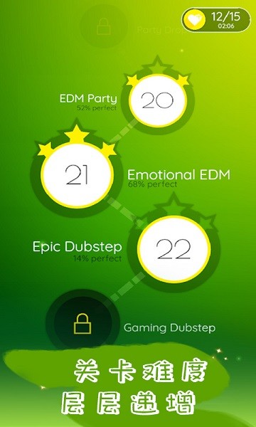 1、成为全球节奏游戏冠军,挑战各种各样的难度,享受轻松上手的玩法。