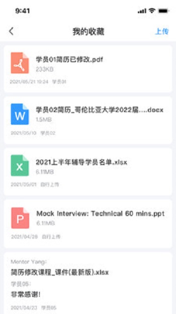 1、支持文件收藏功能,可以将学员发送的重要文档进行收藏,这样可以将文件进行云存储;