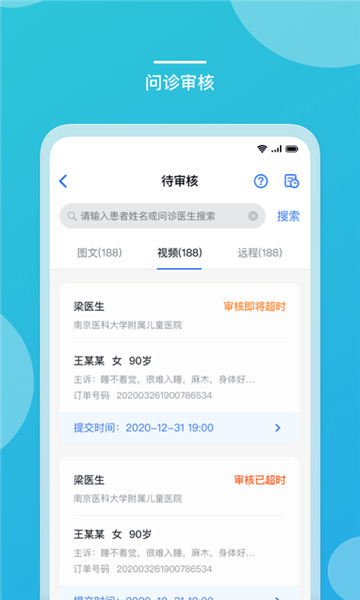 帮助医生快速提高患者就医的效率,支持线上预约拿号、订单审核、医生管理等功能