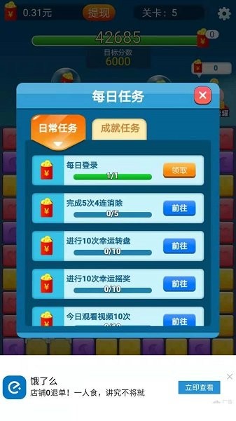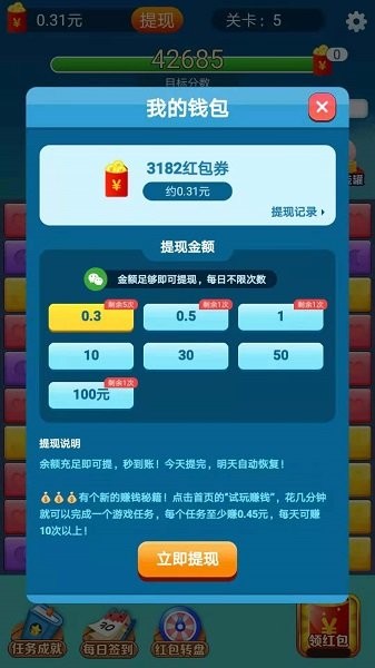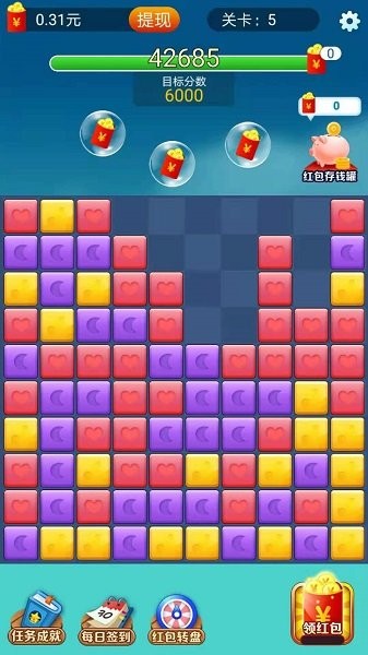 4、更有刺激的红包雨下落,完成消除任务获得红包;