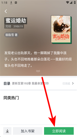 3、在小说详情页,点击立即阅读按钮,进入小说阅读页面。