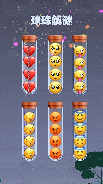 球球总动员小游戏把相同的emjio表情进行排序,关卡难度会逐层递增。累积四个相同的表情即可对其进行封存,直到完成所有容器里的emjio排序即可过关,游戏趣味性很强,感兴趣的玩家不妨来下载体验更多吧!