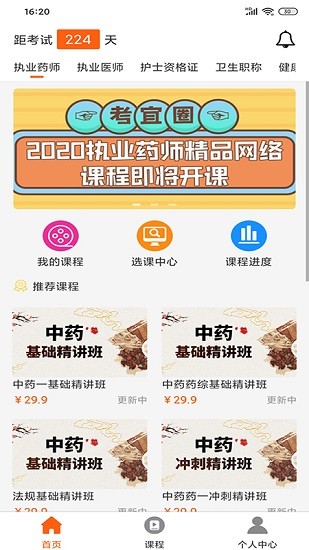 考宜圈专门为医学教育打造的平台,这里有丰富的课程可以在线学习,直播课程都是由名师讲解的,可以无限制进行回放,拥有的科目众多,你可以按照自己需求来进行选择,还有众多的免费课程让你进行学习。线上也是可以查看自己的学习进度,欢迎有需要的朋友下载使用!