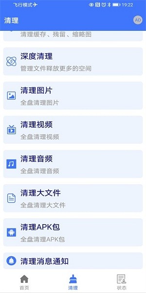 2、深度清理,微信、qq清理,媒体库清理,清理缓存残留缩略图,清理及打开图片、视频、音频、大文件、APK包,清理通知。