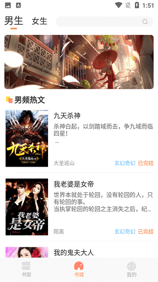 2、清爽的软件设计画面,没有广告的添加,给你沉浸式的阅读体验,各种优质的小说阅读资源一网打尽