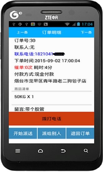 客户电话、一键订气,话务人员审单,并派发订单到送瓶工手机上。