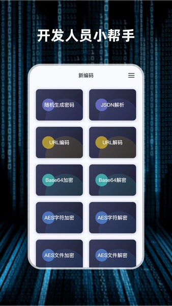 轻随机编码手机版是利用各种编程语言对所提供的的信息进行辅助操作的编码指令app,使用起来非常顺手,支持多种密码的解密和加密,不管是随机生成还是按照需要的方式生成,都能够获得想要的编码!