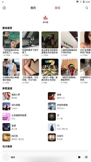 畅听音乐安卓版app是非常实用的听歌软件,用户下载app之后就可以在线搜索试听,丰富的曲库可以满足不同音乐爱好者的需求,从国风到流行,从民谣到摇滚,你喜欢的这里都有。同时app上有非常丰富的歌单,能够为大家推荐超多优质歌曲,赶紧下载畅听app体验吧。