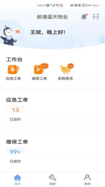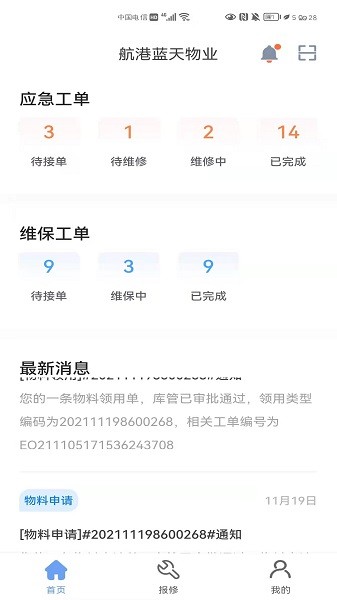 蓝天物业App是以提高物业运维工作效率和管理效能为基础的物业管理工具,提供了日常物业人员的签到管理、应急工单、维护保养、知识库、库房备品备件出入库管理等功能的应用工具。