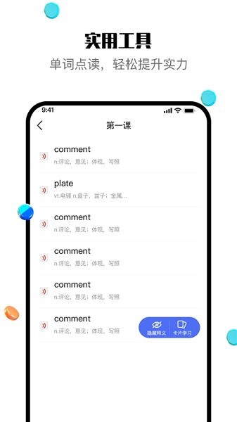单词、例句两种模式任意选;随时随地听英语,充分利用碎片时间。