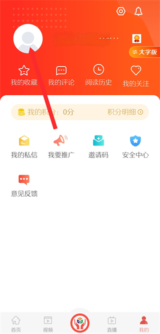 2、在个人功能操作页面,点击头像区域,进入修改信息操作页面。