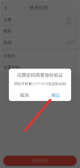 4、在界面点击确定,按提示完成手机验证码验证后,设置符合要求的密码。