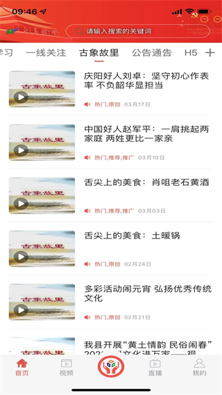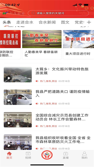 大美合水是合水本地资讯平台,每日都会更新各类新闻,用户可通过它了解本地近期发生的大小事,还能查看新闻直播与短视频等内容,平台支持线上分类筛选功能,方便快速找到感兴趣的新闻阅读,且覆盖的新闻类型多样,基本能满足不同用户的新闻阅读需求,欢迎有需要的朋友下载使用。