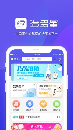 治多星软件安卓版适合患者用户来使用,提供了便捷的远程问诊和咨询服务,可以查找附近的诊所,可以进行诊断服务预约,也可以让医生在线诊断,可以在商城购买各种健康用品,可以查看病例和报告,欢迎有需要的朋友下载使用!