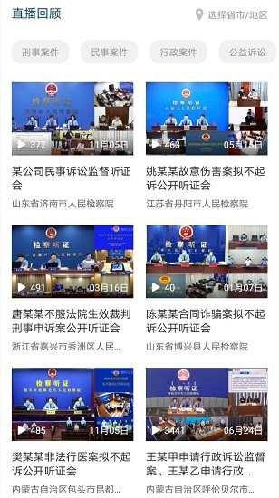 1、全国各地各个检察系统根据该服务平台进行应进行听证直播。