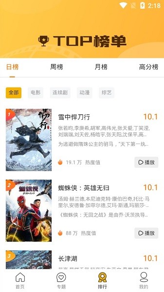 4、权威影视排行榜、日榜、周榜、月榜、评分榜内容一手掌握
