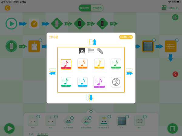 小方糖S是为小方糖S1硬件开发的编程app,是为7岁以上儿童专门设计的可视化编程学习工具。针对7-8岁儿童的认知能力,使用独创的图形化编程和谷歌Blockly编辑编程指令,结合图形与简单语言,帮助孩子理解相关硬件,学习排序、事件、循环、嵌套、条件等编程思维的基础概念和应用。