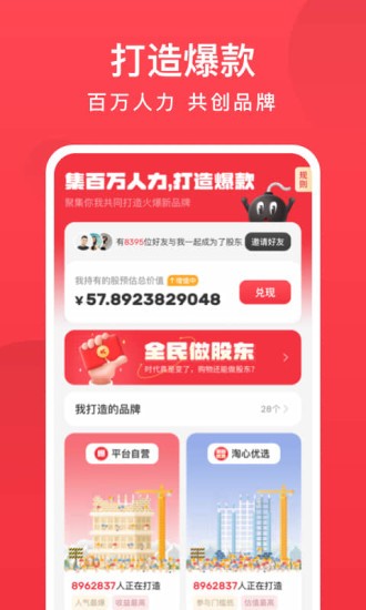 打爆款是一款让用户一起来为喜欢的品牌提供助力,加速品牌成长为品牌爆款的APP. 玩家在助力成功后,可得到海量的独家品牌优惠券,除此之外还可以获得的大量返利红包和奖品。在APP内,助力越多,获奖越多,而且还能和你的好友一起分享购物返利的乐趣。