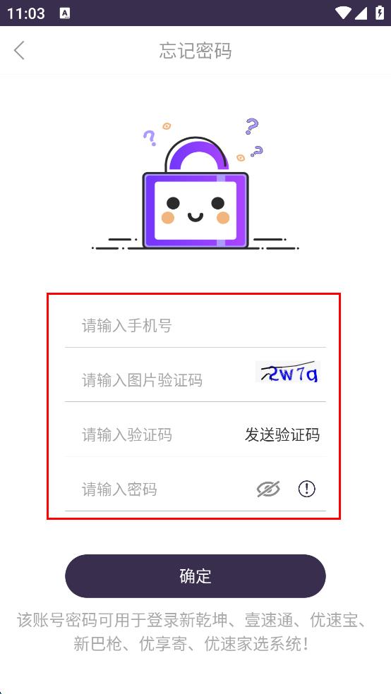 4、在忘记密码页面,依次输入手机号、图片验证码,点击“发送验证码”,输入收到的验证码,然后设置新密码。