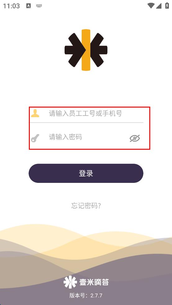 1、打开壹米滴答APP,进入登录页面,输入员工工号或手机号,再输入密码。