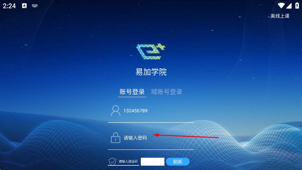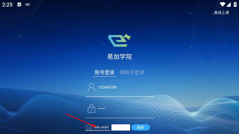 2、进入易加学院登录界面,界面有“账号登录”“域账号登录”选项,还有账号、密码、验证码输入框,在账号输入框中输入账号。