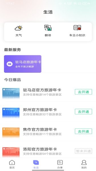 数字驻马店APP本地服务类平台,整合水电气暖、交通出行、旅游景区、文化教育等基础公共服务和社会服务,同时加载惠民和商业拓展功能,实现以下事项的在线服务。