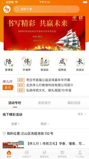 伴儿行专门为青少年提供的一站式教育平台,这里提供丰富的教育课程,线上还可以让孩子们和家长一起上课,同时还有非常多的线下活动可以报名参加。在线还提供搜索功能,可以快速找到相关的教育内容,按照需求选购课程,欢迎有需要的朋友下载使用!