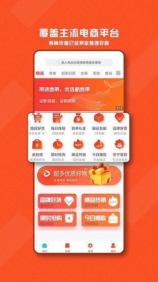 带货地带app集合多家知名平台内部优惠券,一站式搜索!