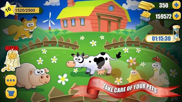 非常好玩的一款农场类休闲模拟闯关类手游,作为农场主的你有责任与义务将自己的农场打理好,不断完成各种植物种植与动物养殖,享受无尽的农场生活乐趣。