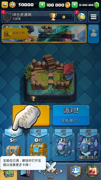 进入后在部落中输入/easy可获得全满卡牌。输入之后可能会卡一段时间,如果实在卡住了就重进游戏,亲测会获得全满卡