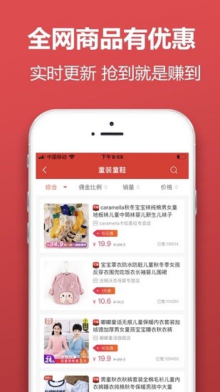 2、每天都会更新超多精选的百余款打折促销商品,最高九块九封顶。