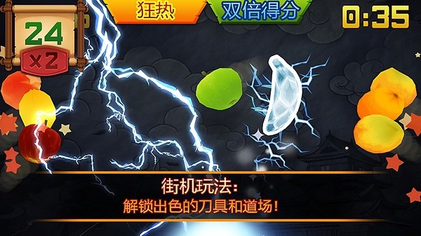 在切中水果正中心时会有会心一击提示,一次+10分。