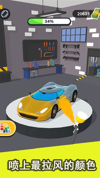 汽车改装大师带来趣味轻松的游戏玩法,玩家将扮演一名汽车维修师,拥有一家自己的改装维修店,每天很多车子会送来保养,你需要帮助客人把他们的车子清洗干净,并且按照要求去喷上不同颜色的漆,还能更换零件改装性能。