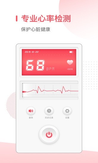 血压心率测量仪,这是一个监控心脏和整个心血管系统健康的工具。我们不仅能帮您测量心率和跟踪血压,而且还能帮您记录,分析结果并提供报告给您的医生查看。只需要把您的手指放置在手机背面的摄像头和闪光灯上即可获得快速准确的结果。可以通过大数据分析您的高血压患病率,当您发现心率或者血压数据异常时,你可以快速采取行动找出原因。