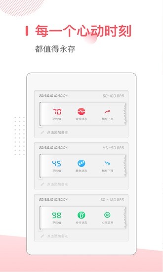 1、便捷记录血压检测数据,随手操作,不用麻烦地处理数据。