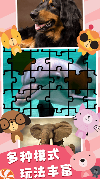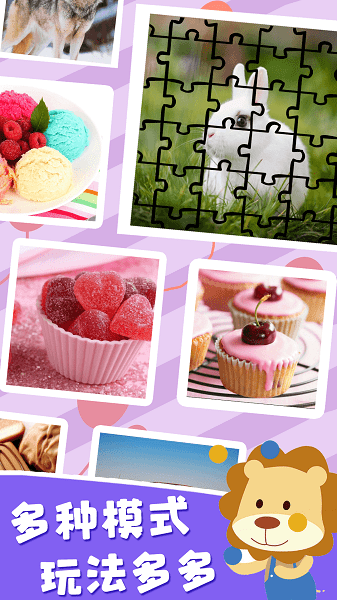 儿童趣味拼图游戏提供了多张图片关卡,玩法完全模拟了现实拼图,把零散的碎片逐一进行拼接,从而完成一幅完整的图画。游戏包含了多种模板,动物、卡通图画、景色、美食等一应俱全。