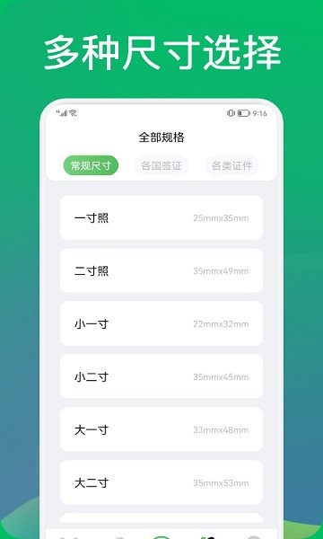 - 应用内各种尺寸齐全丰富,一寸、二寸等多种选择项,免去自己设置尺寸的烦恼。