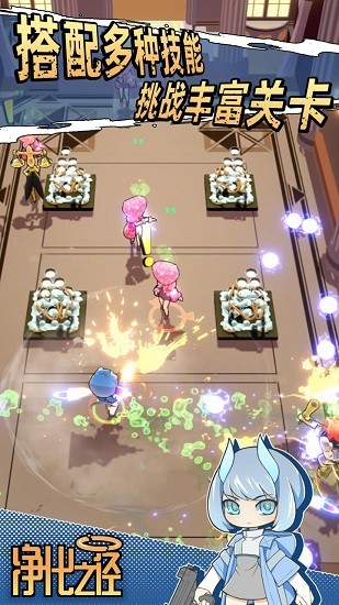 净化之径,一款画风简单的动作射击闯关游戏,游戏非常考验你的操作能力,指尖操控你的角色风骚走位,射击怪物闯关,合理搭配技能,挑战更多关卡,完成你的闯关吧。