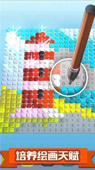 天才画家是一款老少皆宜的绘画游戏,无论是哪个年龄段的玩家,小时候或多或少都画过画,游戏中有一个画板,画板上面有许多方格,把对应的彩色块填进方格晨面,就能组成一幅非常好看的像素风格画作了。无论是画画高手,还是画画新手,操作这款游戏其实都非常轻松无压力。