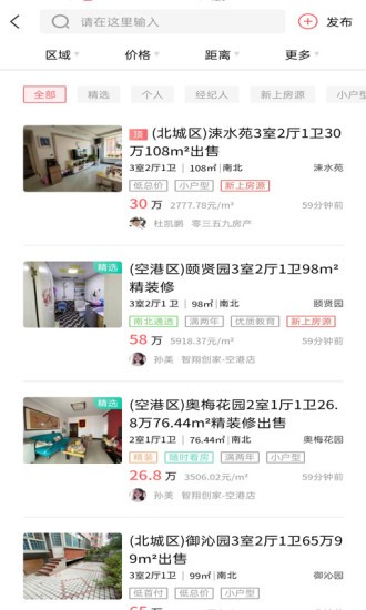 2、二手房源自由筛选,位置、价格和户型可以作为筛选条件。