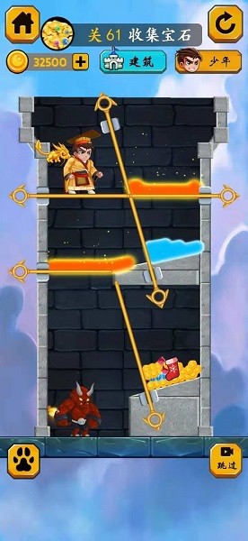 3、通过不断的拉针,保护少年,解救公主,解锁一个又一个关卡。